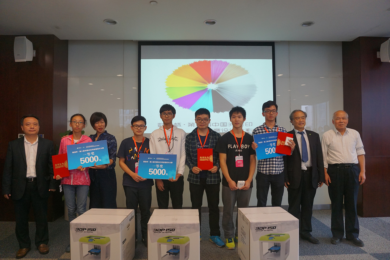 本屆數(shù)造杯·全國(guó)3D打印創(chuàng)意設(shè)計(jì)大賽取得了圓滿成功!盧院士攜眾評(píng)委與參賽選手合影留念。